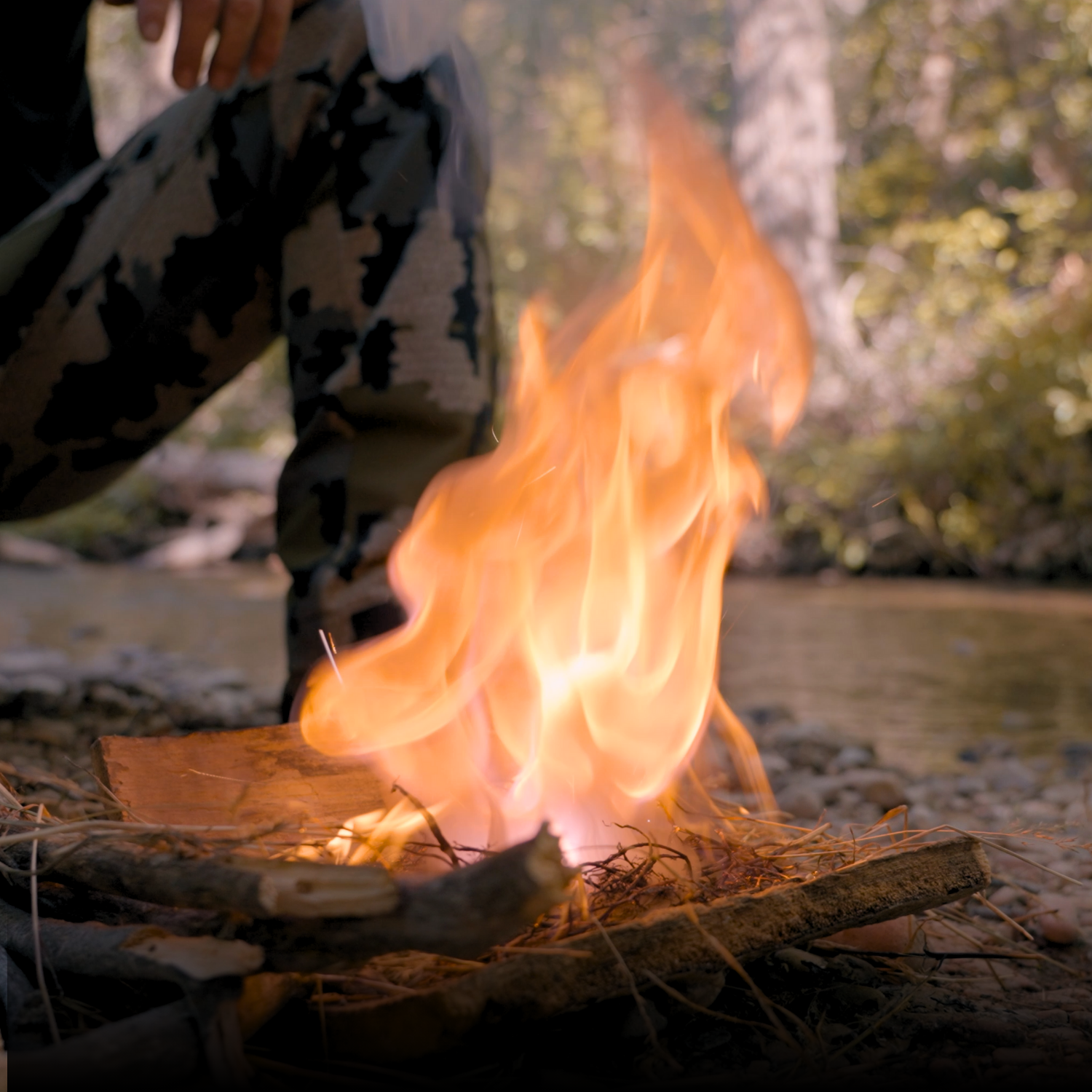 Our patented formula burns at over 2,000° F and will light damp wood and tinder. It lights quickly, easily, and stays lit in the harshest conditions on earth.